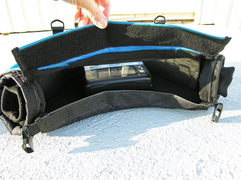 Votten er veldig stiv og holder fasongen perfekt. Du skal bare felle opp tre klaffer som fungerer som sidevegger inne i votten, så er den klar til bruk. Klaffene holder votten i riktig fasong, og det er sydd inn en karbonstang for ytterligere avstiving. Du kan enkelt klappe den sammen for oppbevaring og transport. Votten har borrelås bak som åpnes for å legge inn senderen. Den er romslig, og egner seg for alle typer håndholdte sendere. Når votten lukkes igjen trer du armene inn i de to åpningene, som har en avtagbar elastisk mansjett. Da har du full tilgang til alle funksjoner på senderen, og full oversikt gjennom plastvinduet. Hele votten fremstår som veldig robust, og har gjennomført høy kvalitet på sømmer og materiale.