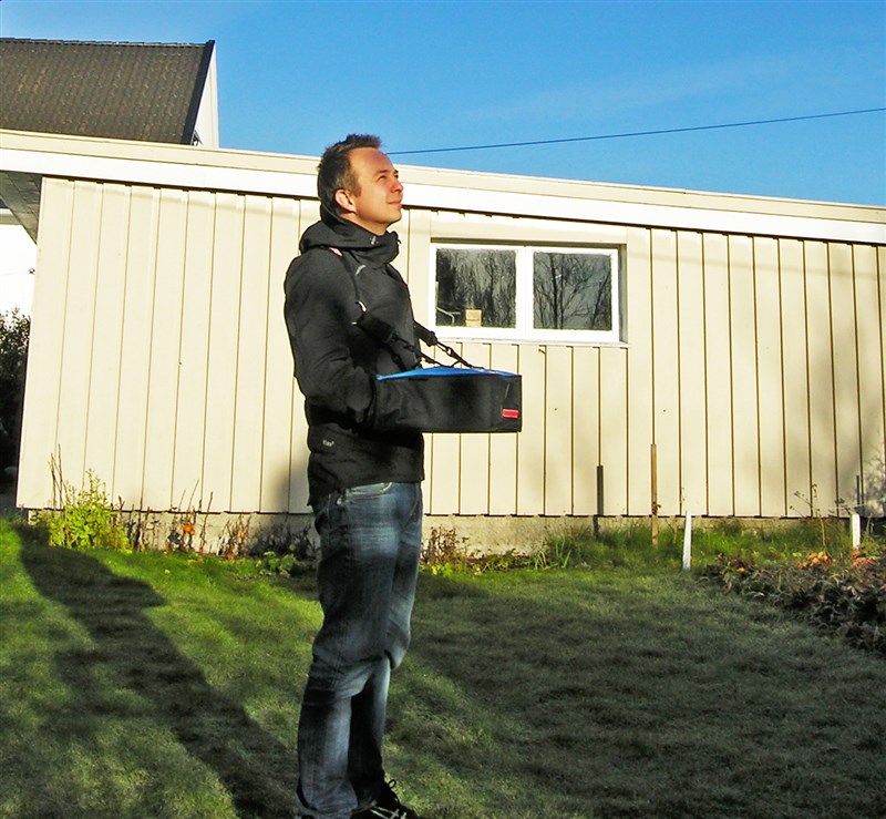 Skulderreima kan justeres, men ikke så veldig mye, slik at votten blir hengende litt langt ned på magen for meg som er 172 cm høy. Skulderreima kan bli for trang over skuldrene om den kortes inn for mye, spesielt med tykk jakke. Det er altså noe mer begrensede justeringsmuligheter i høyden i forhold til den gamle nakkestroppvarianten. En justeringsmulighet på nederste del av reima ville løst dette, men det kan du fikse selv ved å feste en 50 mm. karabinkrok (Eks. fra Biltema) i metallringen til skulderreima, og bruke denne til å hekte fast sendervotten med for å få den lengre opp. Lengre personer enn meg har testet den og har ikke noe problem. Du kan også lage deg en nakkestropp. Bærereimene som følger med Biltemas alu-kofferter passer perfekt. Festene på selve votten er justerbare fremover og bakover, slik at du kan tilpasse alle typer oppheng.