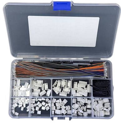 Sett som inneholder PH2.0 hannkontaker med ledninger med ferdige krympede kontakter og krympeplast.