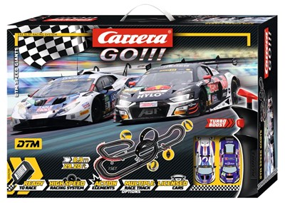 Opplev fartsfylt racing i stua med denne analoge bilbanen i 1:43 skala! Kjør dueller mellom superbilene Audi R8 LMS GT3 Evo og Lamborghini Huracan GT3 Evo på en 6,3 meter lang bane med rette strekninger, krappe svinger, loop og håndkontrollere. Sett