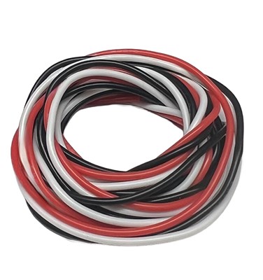 1 Meter silikonservokabel 26AWG. 1 meter svart + 1 meter rød + 1 meter hvit.
