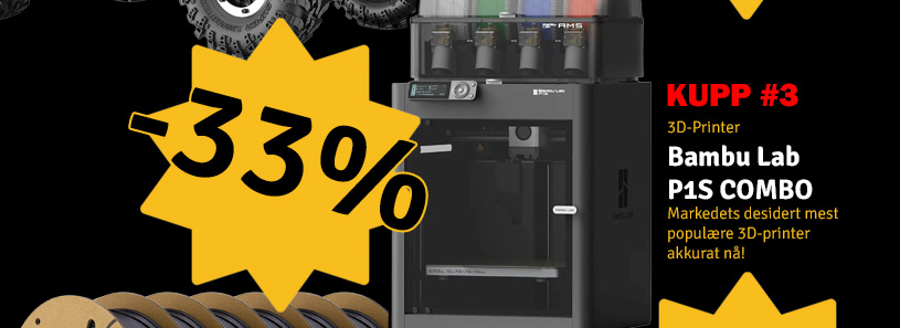 Bambu Lab Black Friday-kampanje! Tilbudet varer til 05.12 Bambu Lab P1S COMBO med AMS er som sin forgjenger en av de fremre høyhastighetsskriverne på markedet. Omsluttet med et riktig kjøleoppsett, mul