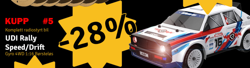 UDI har her forsøkt å utvikle den perfekte innstegsmodell. Resultatet har blitt mer en man kunne håpe! Det er en perfekt bil for nybegynneren, men byr også på mye moro for de mer erfarne. Bilen leveres med driftedekk og standard dekk, så her kan du