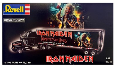 Revell Tour Truck "Iron Maiden" i skala 1:32. Et imponerende byggesett for samlere og fans. Tour Truck "Iron Maiden" gjenskaper bandets ikoniske turnélastbil med autentisk jubileumsgrafikk og detaljerte kromdeler. Et flott sett for deg som liker det