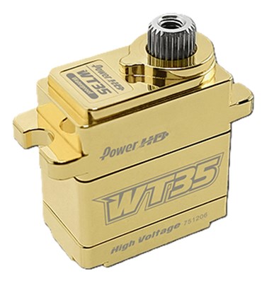 Power HD WT35 er en kompakt, vanntett HV mikro-servo med rask respons og presis styring. Med en transittid på 0,075 sek ved 7,4 V og et dreiemoment på opptil 3,8 kg/cm, passer den perfekt til skala 1/18 RC-modeller.