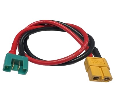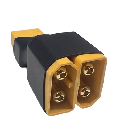 Praktisk og kompakt overgang fra XT60 til EC5. Ypperlig om man f.eks har batterier med XT60-kontakter som skal benyttes mot et EC5-oppsett.