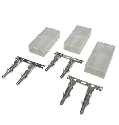 Tamiya-kontakter ble tidlig standarden da RC-biler kom på markedet. De er fremdeles svært utbredt, og som oftest førstevalget på biler med NiMh batterier. Produktet leveres som løse plugger og holdere, og må monteres før bruk. Fest metallpluggen til