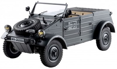 Kübelwagen Type82 fra Roc Hobby er en 1/12-skala WW2-bil som leveres ferdig bygget og med sender, batteri og lader. Bilen har funksjonelle lys, servodrevet ratt og panser som kan tas opp og ned. Under panseret vil du finne en kjøleviftedrevet motor!