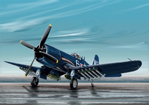 The Corsair is one of the best known airplanes of World War Il which fought against the entire array of aircraft used by the Japanese Forces in the Pacific theatre. After the war the Corsairs were set aside, together with other propeller-driven planes, to expect demolition awaiting replacement by jet aircraft. In 1950, at the outbreak of the Korean conflict, more than one hundred units were re-activated to combat the onslaught of the North Korean Forces. The Corsair still proved a viable airplane, robust and reliable, superior to the first, rather delicate jets which were to end the Corsairs life span.
