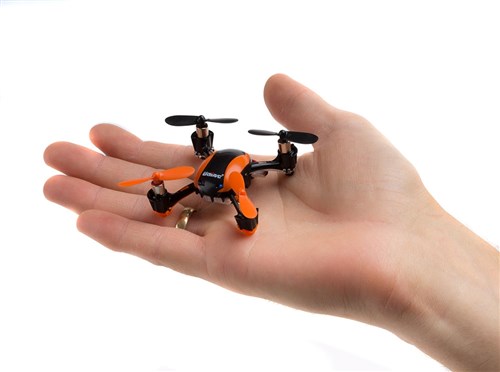 Utrolig liten, men likevel utrolig morsom! UDI har her et kvadrokopter som er kun 4.5 x 4.5cm. Modellen flyr stabilt og fint, og kan brukes selv i små rom.