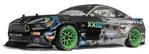 Ny 1:10 onroad-plattform fra HPI, leveres med et tøft Ford Mustang karosseri. Bilen kommer nå med akseldrift i stedet for belter. Drivverket er helt innekapslet slik at de ikke lenger er utsatt for stein, sand osv. Bilen leveres ferdig bygget og komplett med sender, mottaker, børstemotor, ESC, servo, batteri til sender, drivbatter og lader.