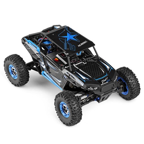 WLToys Across TNT i blå utførelse i 1/12-skala med 4WD, bilen kombinerer god fremkommelighet med holdbarhet og god toppfart. Leveres komplett med oppladbart LiIon-batteri og 2.4G rattradio. Bilen er 35cm lang og har en toppfart opp mot 40km/h. Det følger med lader så det eneste som trengs i tillegg her er 4stk AA-batterier til radioen.