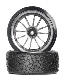 The HPI Racing E10 features a set of treaded drift tires for easy drifting on just about every paved surface. Youll get great acceleration, braking and cornering performance from these slick, hard rubber tires! The tires are molded in a durable, long-wearing rubber compound that will give you a long life for hours of fun and enjoyment. Each tire is securely glued to a cool-looking competition style wheel, molded from flexible yet firm plastic. The wheels are each coated in a shiny metallic finish to look great on the shelf or on the track! If you want to customize your E10, you can always swap out or replace the wheels and the tires mounted to them, just like a real car!