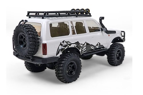 Skikkelig kul radiostyrt crawler som leveres med 2stk oppladbare batterier! Bilen er 28cm lang, har 4WD og leveres med 2.4ghz sender. Den har skala hardbody med kraftig kufanger og kule detaljer som snorkel, takgrind, speil med mer. Når man kjører slår frontlysene seg på og bilen er til og med utrustet med blinklys!