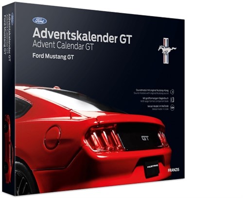 Adventskalender med byggesett av en Ford Mustang GT i 1/24-skala. 24 luker som gjør ventetiden frem mot jul til en lek for Ford-entusiasten. Ford Mustang GT er ett ekte Amerikansk ikon og denne kalenderen skiller seg fra de fleste andre Franzis-settene med at byggesettet er 1/24-skala.