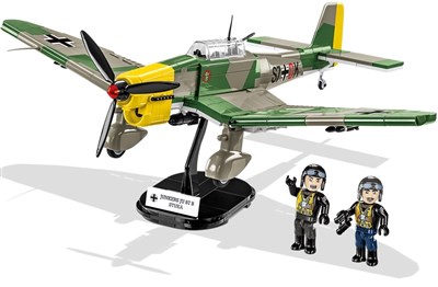 Byggesett av den tyske Junkers JU-87 B Stuka i skala 1:32. Settet består av 514 deler og kommer med understell, bevegelige ror og roterende dekk og propell, imiterte bomber og gevær, stand med navneplate og to tyske piloter. Cobi klosser er kompatib