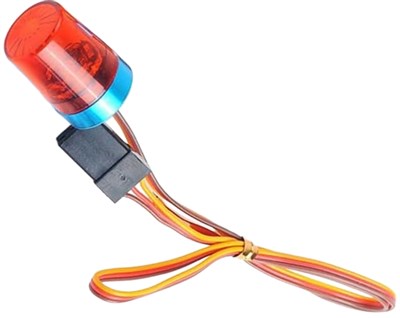 LED varsellampe med flere lysfunksjoner. Kontroller belysningen på en ledig kanal i ditt radiosystem, og velg mellom å slå lampen av/på og fire øvrige lysfunksjoner. Det medfølger to festeskruer og muttere i pakken.