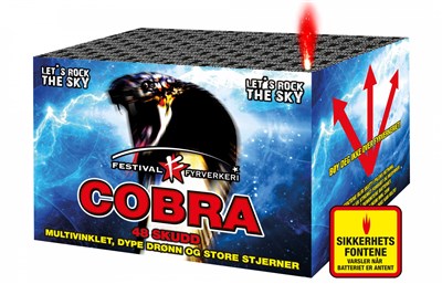 10% rabatt ved reservasjon t.o.m. 28. desember. Bruk rabattkode: GodtNyttÅr Cobra-batteriet er en skikkelig kraftpakke med sine 1000g krutt.. Batteriet har en varighet på ca. 60 sekunder og inneholder 48 skud