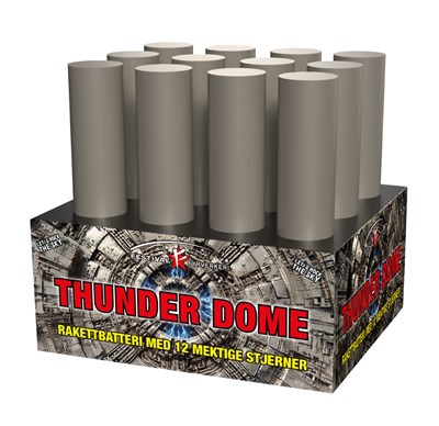 10% rabatt ved reservasjon t.o.m. 28. desember. Bruk rabattkode: GodtNyttÅr Thunderdome er et rakettbatteri med store stjerner i rolig tempo, Rød/Blå stjerner med sølvglitter, gullstjerne til blått, gullregn