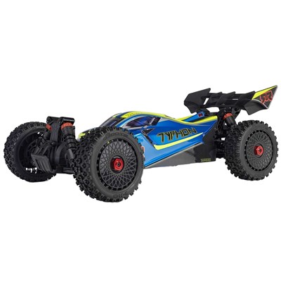 ARRMA Typhon 1/8 Buggy 4WD TLR Roller Arrma Typhon Buggy 4WD 1/8 leveres her som roller! Denne bilen er en TLR tunet versjon av den populære Typhon BLX, her får du laserkuttet aluminiumsdeler og flere andre oppgraderte deler. Bilen leveres ferdigbygd, men uten elektronikk, som gir deg m