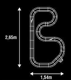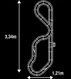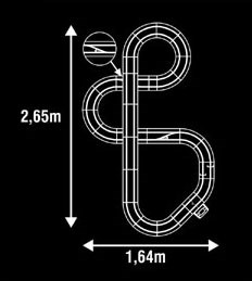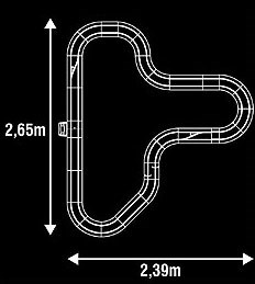 I boksen finner du en komplett bilbane med alt nødvendig utstyr. To digitale biler(Porsche GT), håndkontroller, skinner, gjerder, bro osv... Det er skinner nok til å bygge en rekke ulike baner, og skulle det være ønskerlig finnes det en mengde utbyggingsmuligheter.