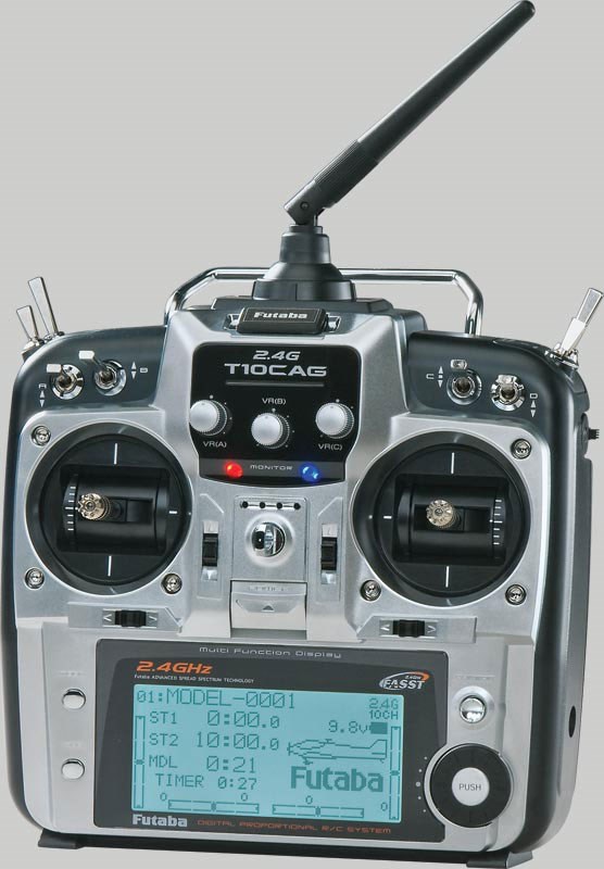 Futaba 10CG FASST med innebygget 2.4ghz modul. Radioen leveres med R6014 FASST mottaker, strømbryter og ombyggingsdel for å få glatt stikke slik som de fleste bruker på helikopter. Radioen leveres uten servoer, batterier og lader.