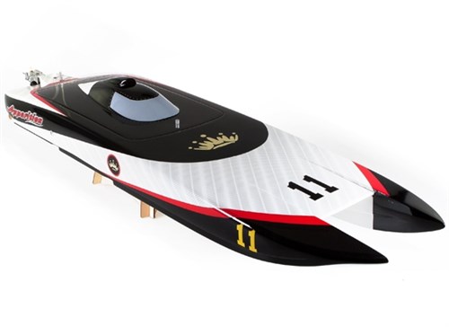 Båten leveres komplett med radioutstyr, men uten batterier og lader. Du vil behøve 8AA batterier til sender og 2 stk. 11,1V 2200mAh 25C drivbatterier samt egnet lader. Regulator er klargjort med deanskontakt.