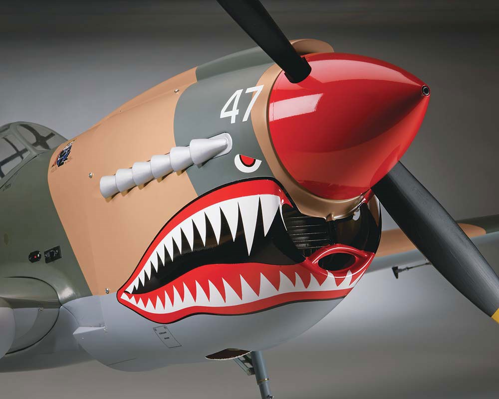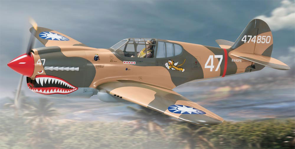 Made famous by Colonel Claire Chennaults "Flying Tigers" squadron at the onset of World War II, the P-40 Warhawk had one of the most impressive kill-to-loss ratios of any Allied fighter plane. Equally impressive is Top Flites IMAA-legal replica of the P-40, which utilizes Gold Edition engineering to capture the exciting details of this revered warbird in a great-flying ARF!