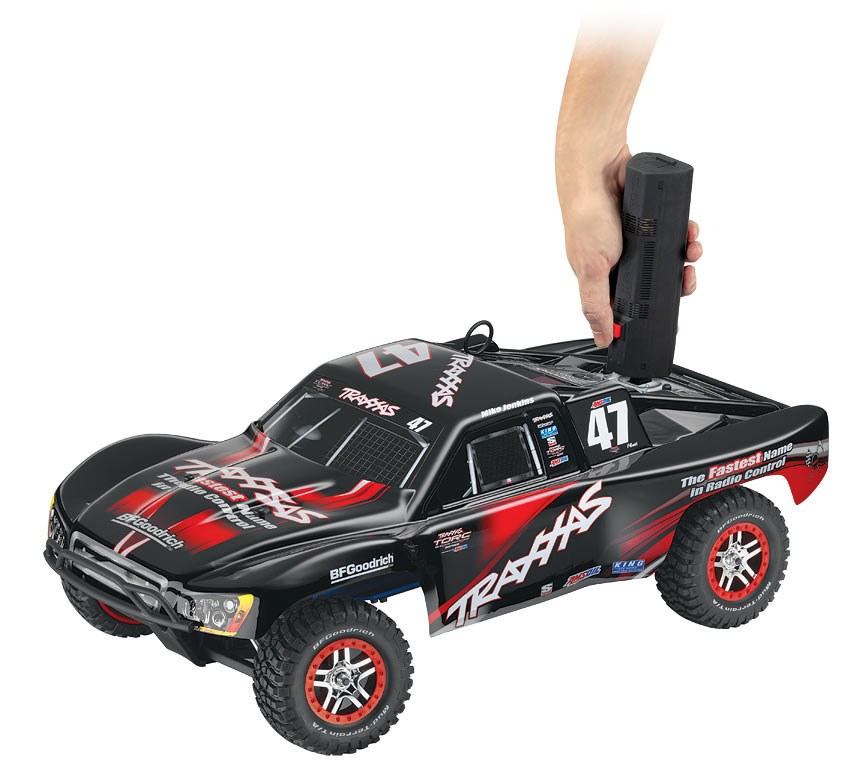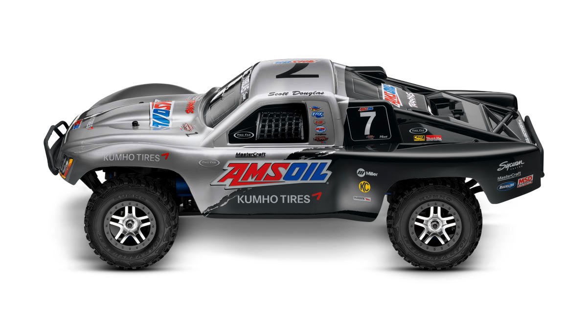 Authentic Pro 4X4 Action in a Nitro Powered Short-Course Race TruckNEW! 30mm longer wheelbase and 26mm wider track than the original SlayerOfficially licensed Racing Replica bodies and tires4-Wheel Drive50+mph*