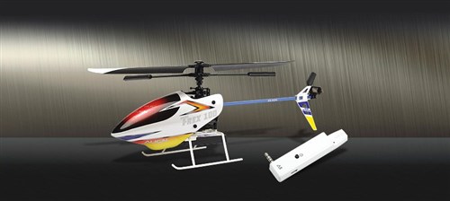 • Special iPhone app incorporating fully functional remote control capability for controlling T-Rex 100X. In addition, the built in gyroscopic sensor of iPhone can be used to fly the helicopter with motion sensing.