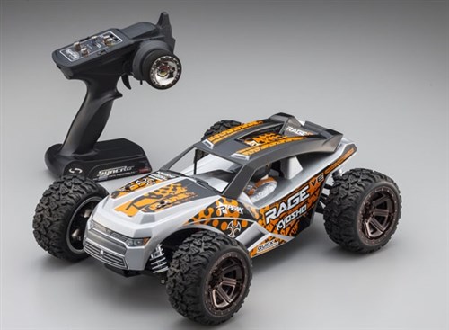 Flott nybegynner-elektrobil fra Kyosho med børsteløst oppsett og 4WD. Bilen leveres ferdig montert med tøft lakkert karosseri, elektronikk som servoer, motor og fartsregulator er allerede klar i bilen og det følger med 2.4GHz rattradio.