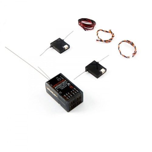 The AR9030T receiver is a feature-packed, 9-channel receiver with integrated full-range telemetry. The AR9030T features built-in connection ports for RPM, Flight Pack Voltage, and Temperature sensors as well as an X-Bus port for additional telemetry options. No sensor is required to receive flight log or receiver pack voltage telemetry data. If you have a DSMX® transmitter capable of 11ms frame rates, the AR9030T receiver will deliver lightning-fast input-to-output response that is perfect for high-performance applications like 3D helis and airplanes. The AR9030T includes 2 DSMX® remote receivers that allows you take advantage of Spektrum MultiLink? technology. This patented technology eliminates the reflected signal fading and antenna blind spots that can affect all 2.4GHz systems.