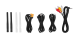 Brillene leveres i oppbevaringsetui og det føgler med 2stk 2dBi-antenner, datakabel, JR-datakabel, AV-kabel og strømkabel til XT60. Brillene leveres uten batteri, men kan driftes av 2-6S LiPo med XT60-kontakt.