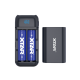 Genial lader for opptil 2x 18650 Li-Ion batterier som også fungerer som en powerbank med oppladede batteri. Lader Li-Ion med den medfølgende USB-kabelen på 2A. Din mobil/USB-enhet lades på 2.1A. Med laderen plugget i veggen kan både Li-ion batteriene og din USB-enhet lades samtidig. Passer ikke 18650 batterier med protection circut