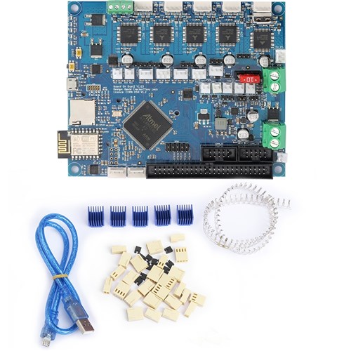 a external antenna for extending Wifi range or allowing the Duet 2 Wifi to be mounted in a shielding enclosure with the antenna outside. Super quiet TMC2660 stepper drivers, up to 256 microstepping. High speed uSD card and support for a second external SD card if required. Dual extruders on the main board, up to 5 more extruders on the expansion board. High Power rating: Each stepper driver is capable of 2.8A motor current, currently limited in software to 2.4A. The bed heater channel is specifically designed for high current (18A). Connect via PC, tablet or smartphone on the same network to the on board web interface. Set up your printer and update the firmware through the web interface. All common 3D printer geometries are supported Expandable up to 7 extruders with Firmware support for mixing nozzles and remapping axes to use high power external drivers. Support for the PanelDue: a full colour graphic touch screen Support for DC42?s IR Z probe and the Duet3D Smart Effector for delta printers. Provided with Molex compatible plugs and crimps as well as ferrules for power and heater terminals.
