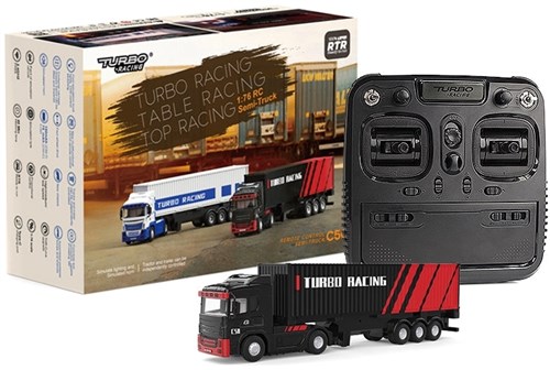 Her har du en mini semi-trailer som virkelig leverer opp til navnet! Denne lille tassen kommer med full proposjonell styring, lys med flere funksjoner som blinklys, ryggelys, kabinlys, fungerende frontlykter for å nevne noe. Semi-traileren krever også at at du selv bygger containeren-lasten selv. Du kan også feste og hooke av containeren via radioen, her snakker vi skala! Lastebilen med trailer har en kjøretid på opp til 40min, lades via medfølgende USB-C (lastebil og trailer lades separert) og styres via den geniale 10-kanals senderen. Du behøver kun 4stk AA-batterier til radio.