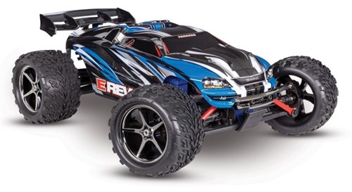 1/16 E-Revo takes all the track-proven innovation of the full-size E-Revo VXL and scales it down to a convenient go-anywhere size. E-Revos rocker-actuated suspension has been expertly adapted to 1/16 scale with its oil-filled, threaded-body GTR shocks. This superior technology provides capability, performance, and tuning functions at the absolute pinnacle of truck design. E-Revos monocoque chassis balances strength and weight to far surpass the standards of the "mini" category.