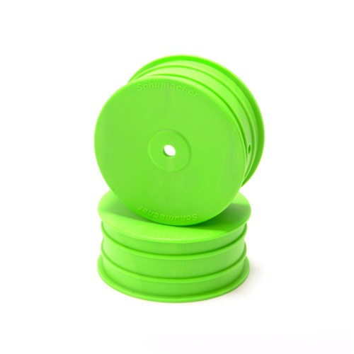 Grønne felger. Passer til fremmre hjul på 1/10 skala buggy biler og har 12mm hex, leveres 2 stk (1 par) i pakken.