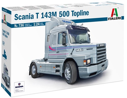 Scania T 143 M500 ToplineTopline-konfigurasjonen inkluderte en høy, romslig førerkabin, som sikret et høyt nivå av komfort under lange kjøreturer. Teknologiske innovasjoner som det avanserte bremsesystemet og luftfjæringen bidro til kjøretøyets sikkerhet og stabilitet. Scania 143 oppnådde raskt kommersiell suksess på grunn av sin effektivitet og lastekapasitet, og den spilte en avgjørende rolle innen vei-logistikk og tung transport i den perioden. Selv i dag, mange år etter at produksjonen ble avsluttet, huskes den fortsatt av lastebilsjåfører for sine kjøreegenskaper og kjørekomfort. Lim, maling og pensler følger ikke med og må kjøpes seperat.