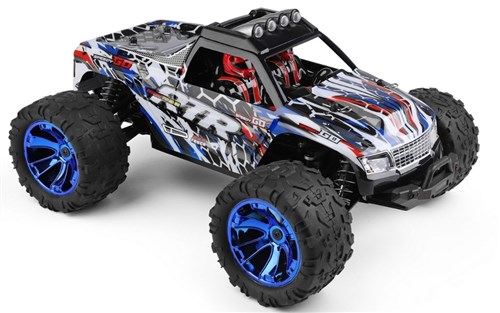 WLtoys monstertruck er en kompakt og brukervennlig modell som gjør det enkelt å komme i gang med RC-hobbyen. Den gir deg en god kombinasjon av fart og kontroll, med justerbar topphastighet på opptil 35 km/t og firehjulsdrift som sørger for stabilitet på ulike underlag. Det stilige karroseriet har innbygde LED-lys, som gjør kjøringen ekstra morsom. Leveres komplett med sender, oppladbart batteri og lader!