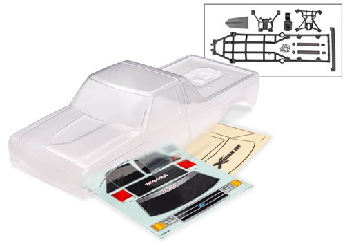Karosseriet leveres ferdigklippet, med dekaler og maskering, men ulakkert. Karosseriet passer X-Maxx MT chassis med clipless mounting.