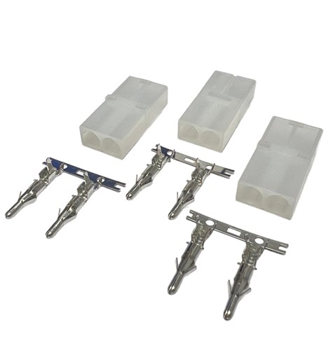 Tamiya-kontakter ble tidlig standarden da RC-biler kom på markedet. De er fremdeles svært utbredt, og som oftest førstevalget på biler med NiMh batterier. Produktet leveres som løse plugger og holdere, og må monteres før bruk. Fest metallpluggen til kabelen med en krympetang, skyv den deretter inn i holderen og vipps så er kontakten klar til bruk.