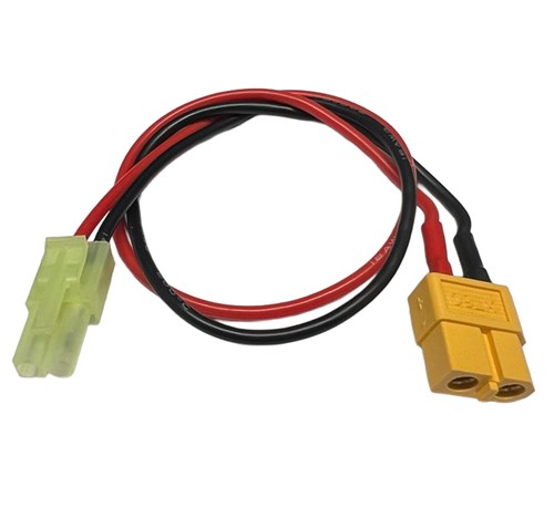 Ladekabel med XT60 til Minitamiya -plugger. Benyttes for lading av batterier med Minitamiya, og kobles rett i ladere med XT60 tilkobling.