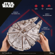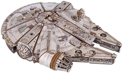 Gjennomført modell bestående av laserkuttede treplater som sammensatt gjenskaper den ikoniske Millenium Falcon. Modellen har inkluderer et uttrekkbart tak, detaljert interiør, bevegelige lasteporter, rampe, kanontårn og en roterende 360° antenne. Batteridrevne LED-lys simulerer hyperdrive-motorene, mens fargede elementer og fiberplater med høy tetthet gir både visuell autentisitet og styrke. Dette er et avansert byggesett og ferdigheter kreves, settet består av 1235 deler, man trenger ikke spesialverktøy eller lim.