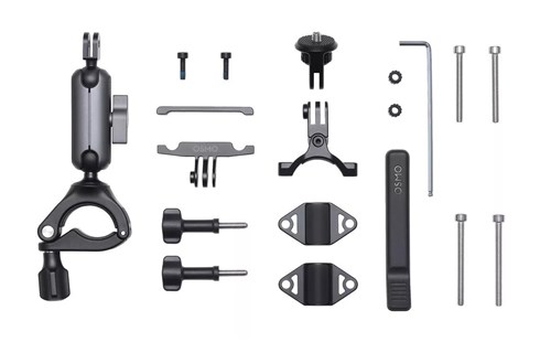 Fest Osmo 360- eller Action-seriekameraet ditt på fronten av en sykkel med DJI Osmo Multifunctional Bike Tube Mount Kit. Settet inkluderer et 3-punkts feste for actionkamera, en forlengerstang i karbonfiber og tre adapterringer som passer til styre i ulike størrelser. Forlengerstangen gir ekstra høyde, slik at du kan fange klare 360° opptak mens du er i bevegelse.