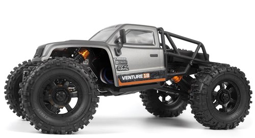 Venture18 CC har et fjæringsoppsett som gir god bakkeklaring og kontroll i teknisk terreng. Fjæringen er basert på løsninger fra større offroad-kjøretøy, og plasseringen av styreservo, girkasse og elektronikk er gjort for å holde tyngdepunktet lavt. Resultatet er forutsigbar håndtering og god fremkommelighet på små og ujevne hindringer.