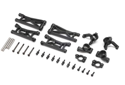 Dette settet med armer og hubs til Losi Micro-B/T inkluderer to fremre og to bakre armer, bakre hubs, fremre spindler, fremre carriers, ball studs, hengestifter og mutre.