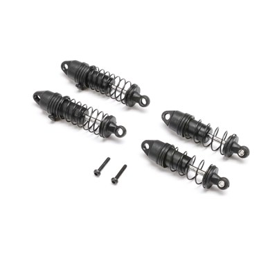 LOS-1765 Shock Set, Assembled (4) Micro-B/T. Dette støtdemperset inkluderer 2 front- og 2 bakdempere som leveres ferdig montert med 20 wt olje og festeskruer.