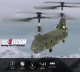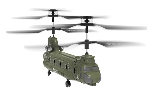 Boeing CH-47 Chinook fra Syma er et kompakt helikopter på 26.5 x 3.7 x 10.5 cm. Ta en tur med dette ikoniske Chinook i miniatyrformat. Helikopteret har 2.4GHz-kontroll med enkle og smarte funksjoner som hover mode, som holder høyden automatisk selv om helikopteret dyttes bort, samt auto take off og landing. Perfekt for førstegangspiloten som vil prøve og teste egne flyferdigheter.