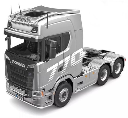 Nydelig Scania 770S lastebil i skala 1:14 med flere metalldeler. Lastebilen kommer med 2-trinns girkasse, difflock skalasimulerte lys- og lydeffekter og dører som kan åpnes og lukkes. Scaniaen veier hele 4,8kg og kjennes som et skikkelig premiumprodukt.